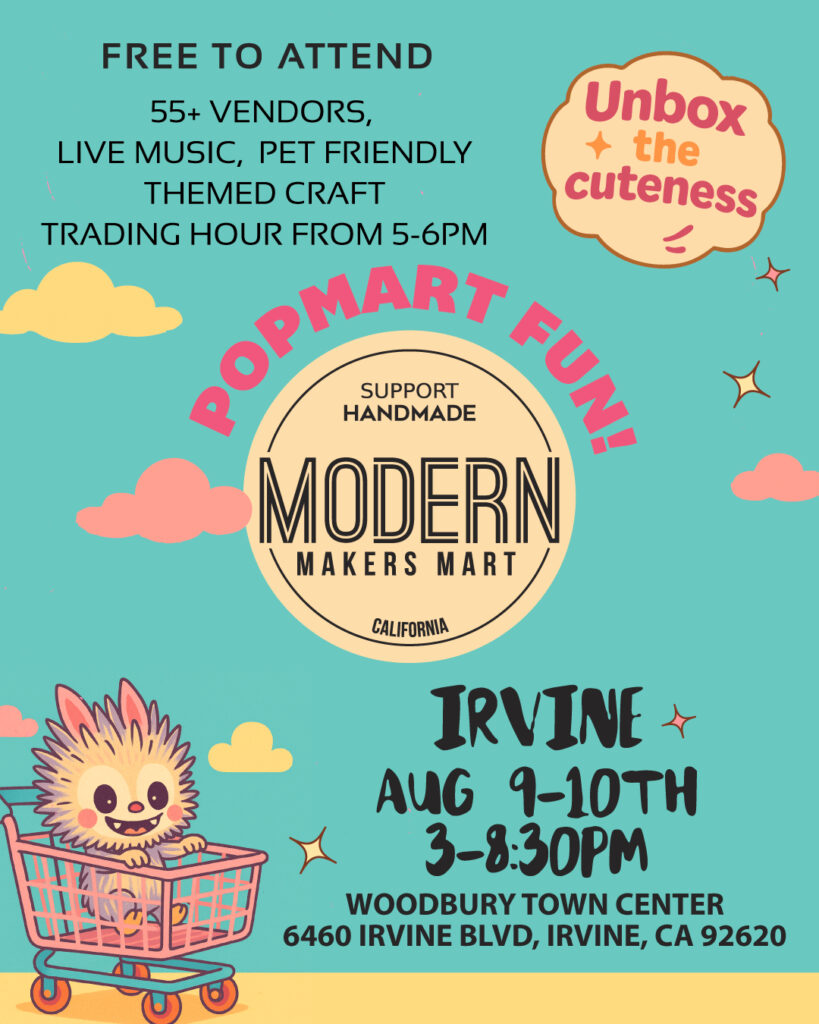 I will be at Modern Makers Mart on August 9 from 3 to 8:30. Woodbury Town Center. 6460 Irvine Blvd. Irvine, CA. Come check out our Local Indie Author Booth!